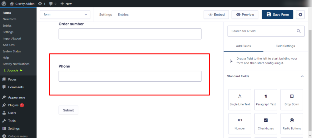- Embed the Gravity form to a post or page or anywhere you want to embed.